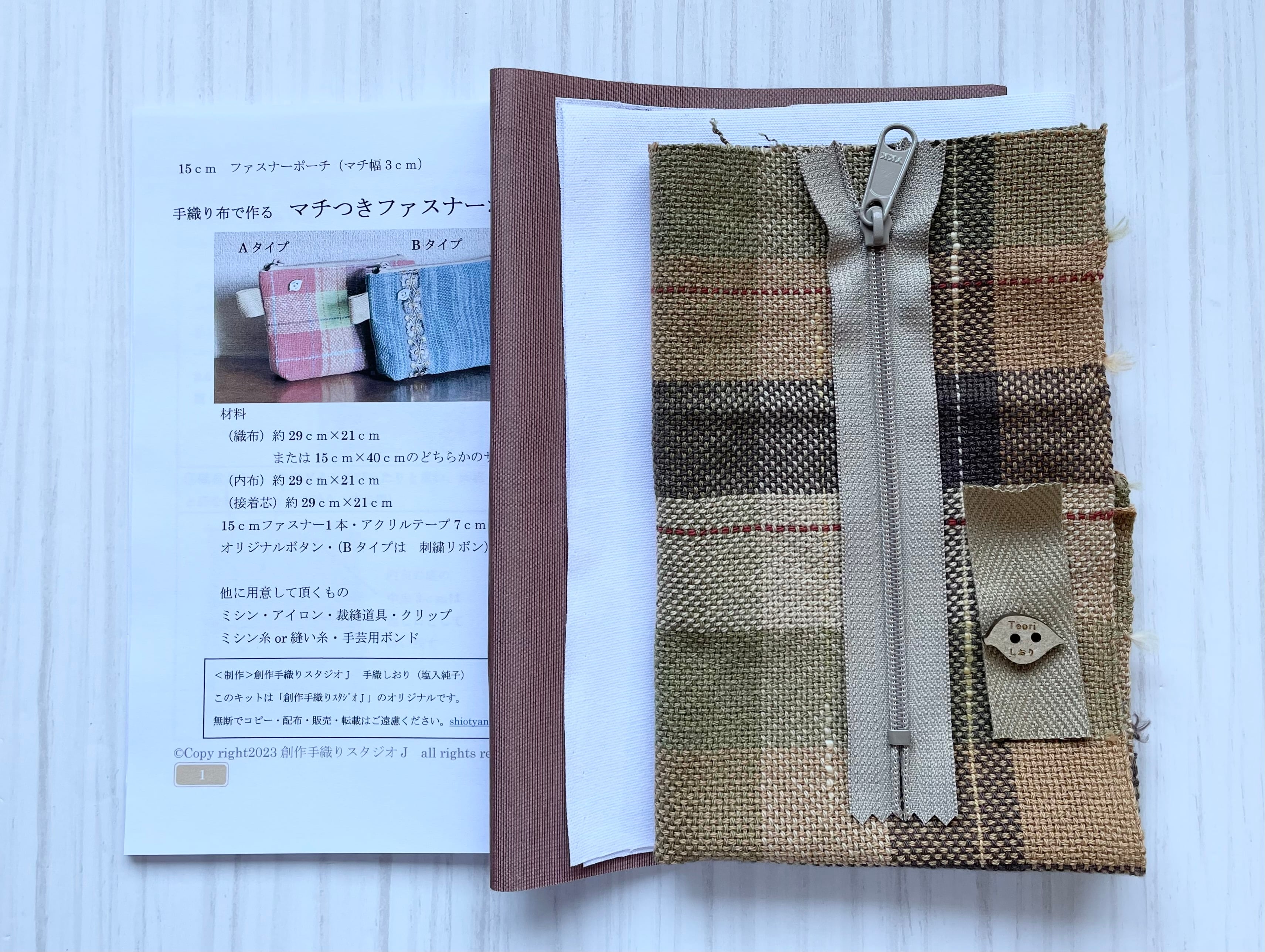 織布付きのファスナーポーチ制作キット【難易度②】です。
