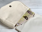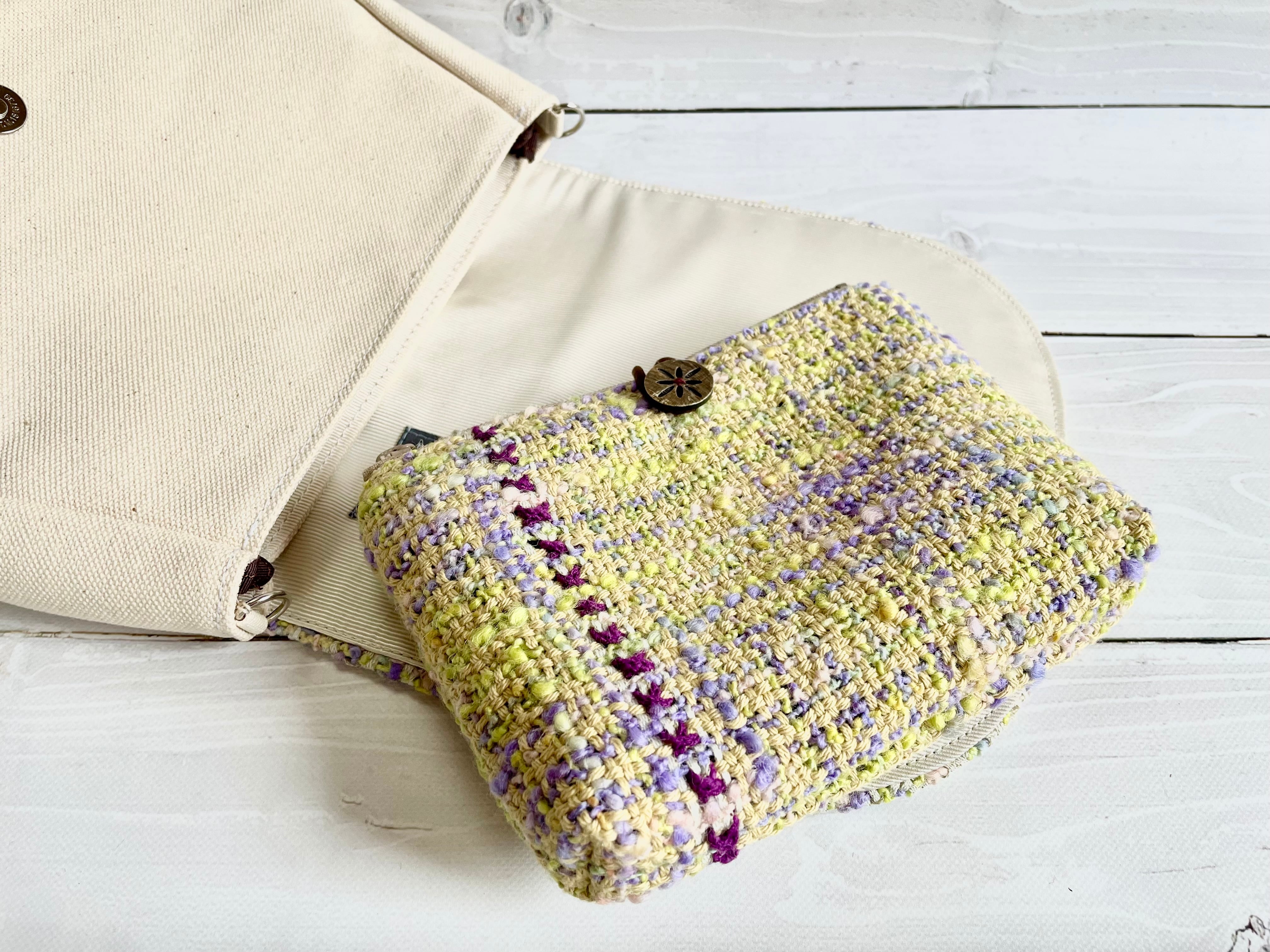 レシピ、織り糸、ファスナー2本、内布、接着芯、太ゴム紐、ボタン