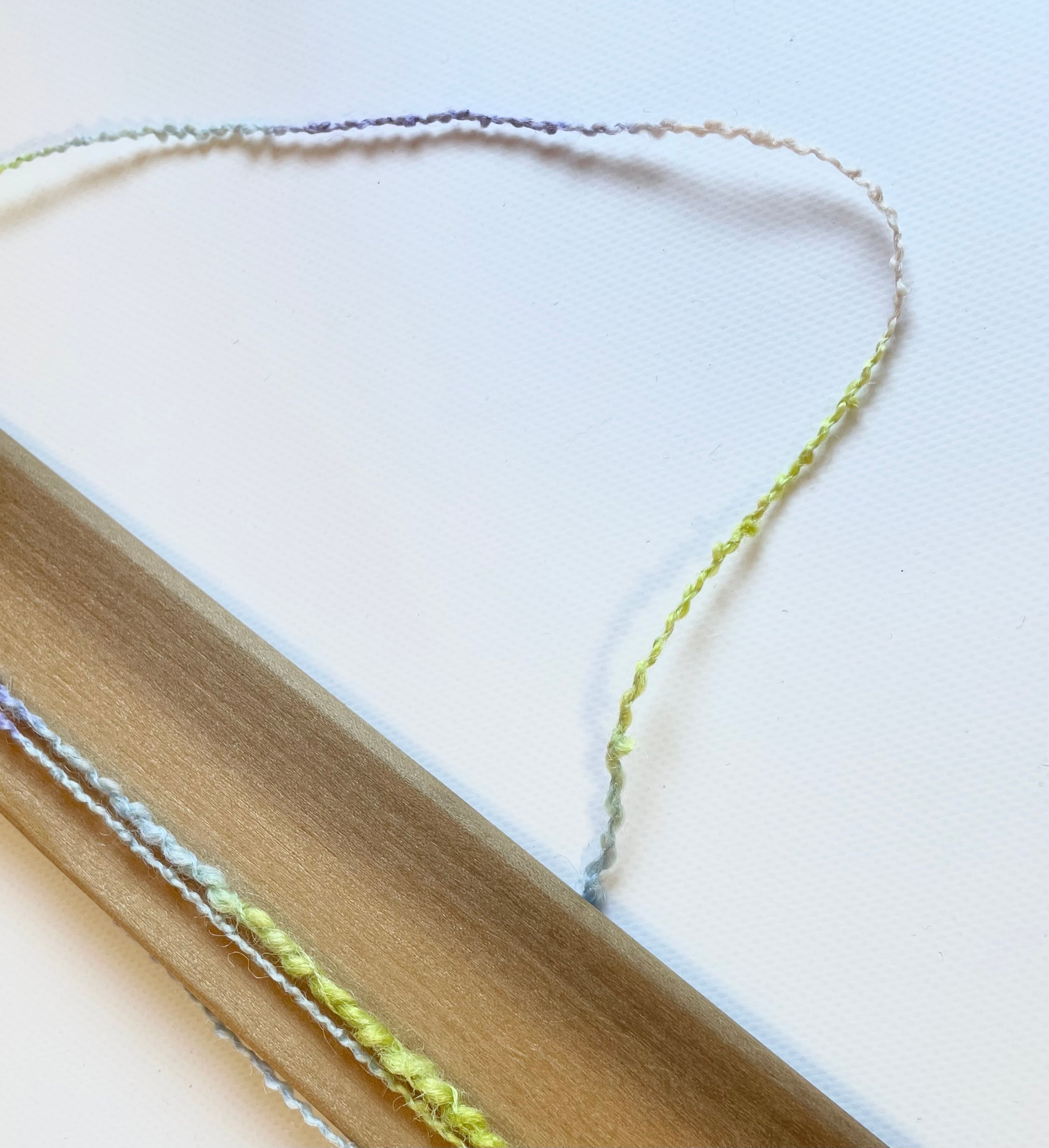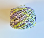 パープル~ピンク~グリーン~ブルーに変化する 段染めのスラブ糸です。