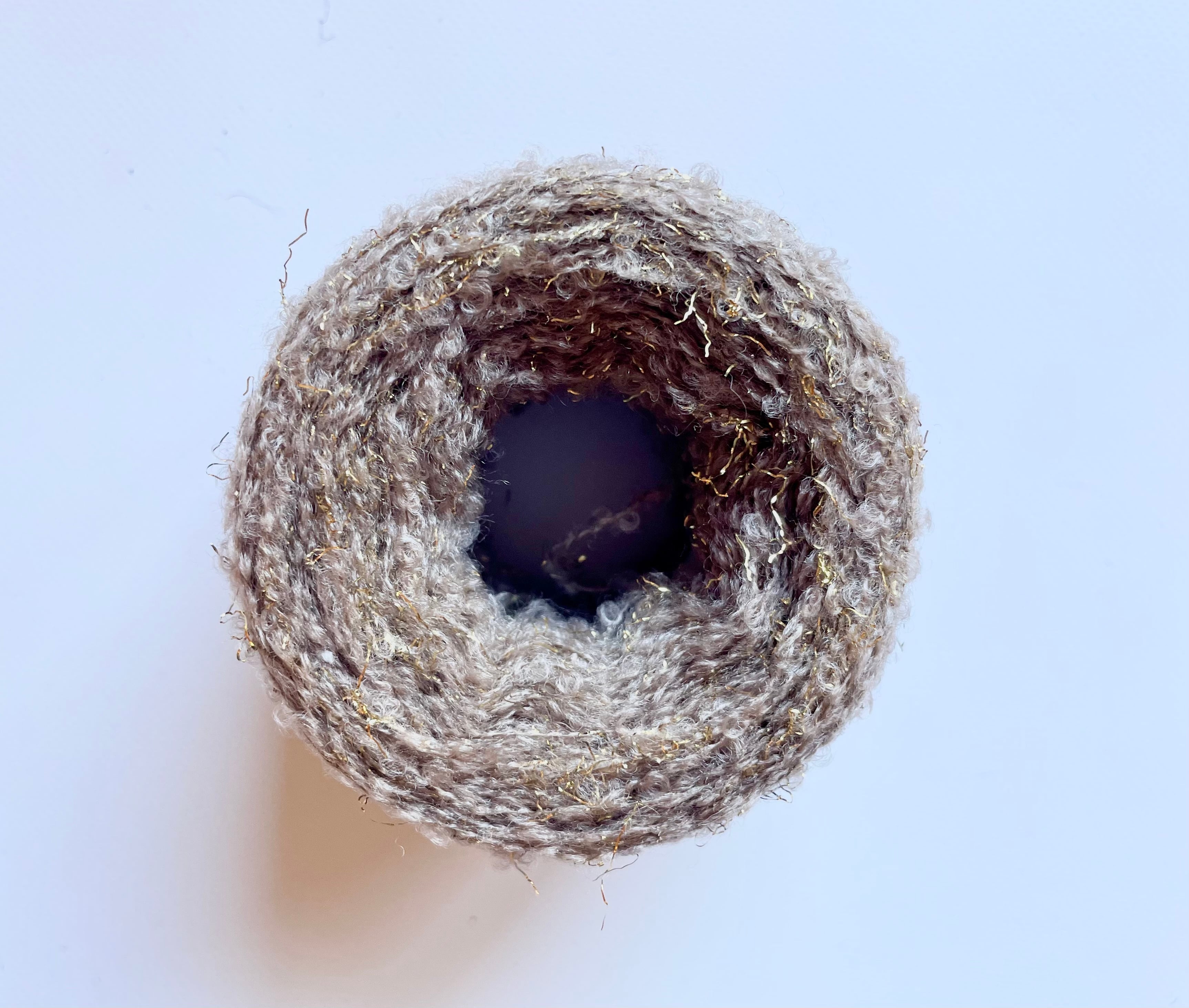 ラメがわずかに光る ベージュの柔らかいループ糸です。