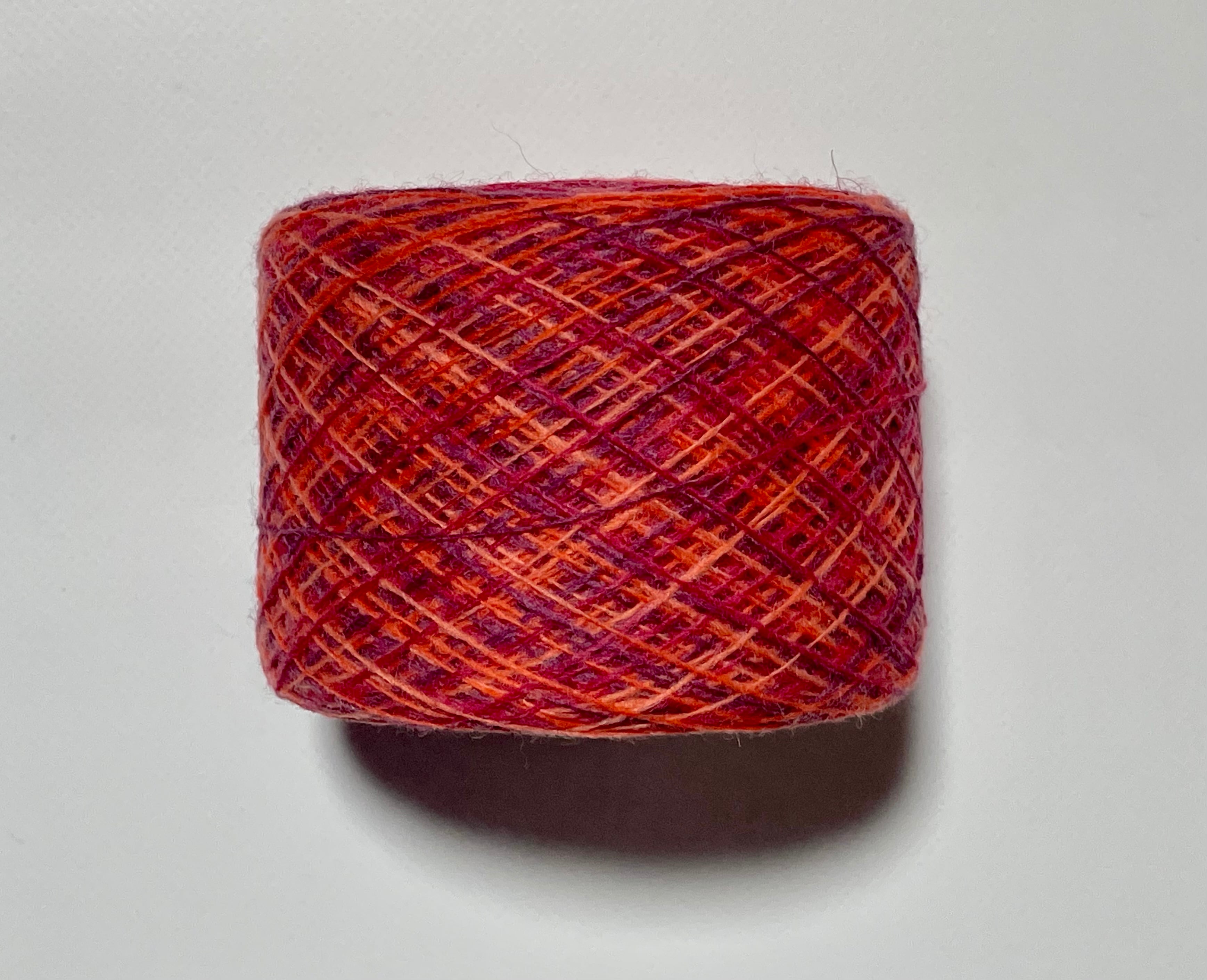 細めの段染め糸です。複数本を引きそろえて使うのに向いています。